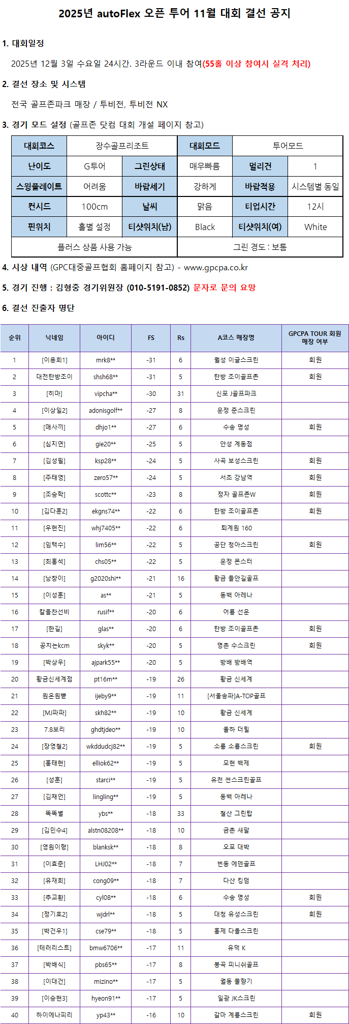 2025³â GPCPA ¸¶½ºÅÍÁî Åõ¾î 11¿ù ´ëȸ°á°ú