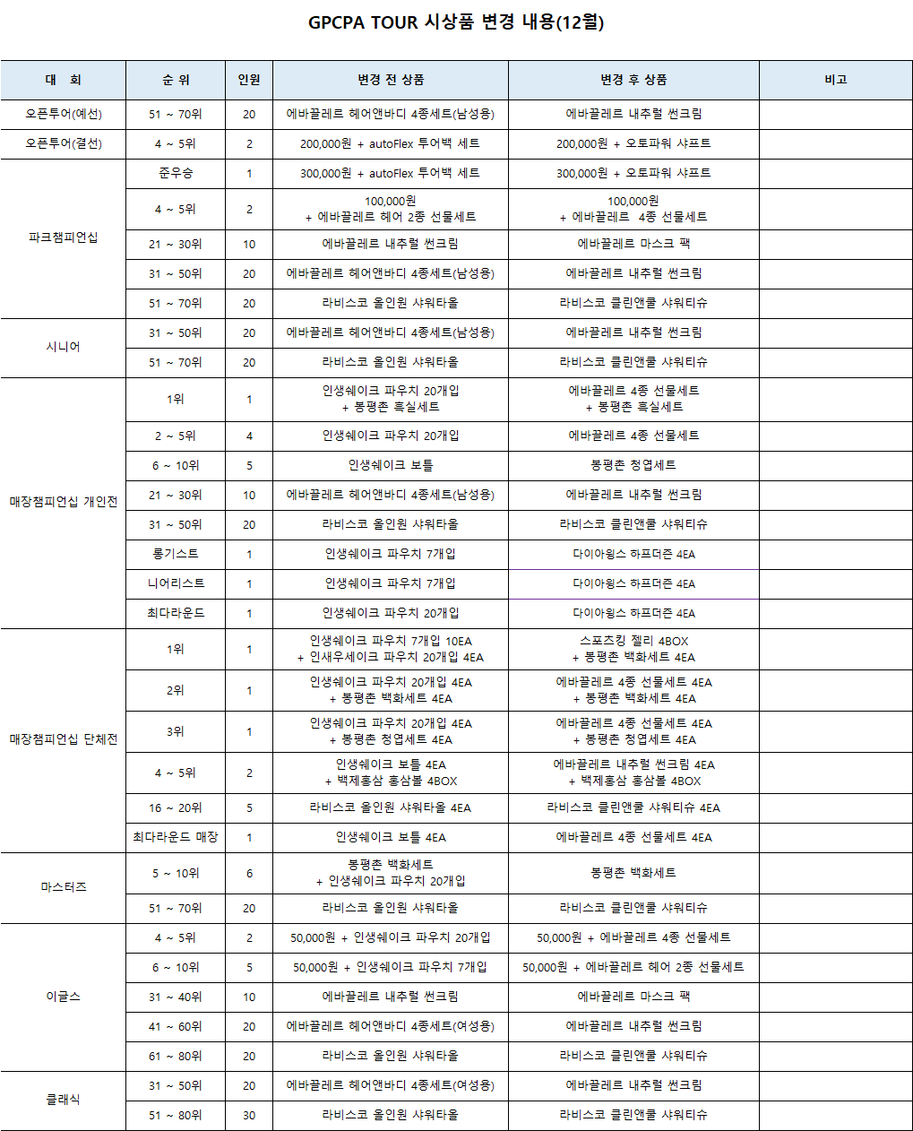 2025³â 12¿ù GPCPA TOURÀÇ ½Ã»óǰ Áß ÀϺÎÀÇ ¼ö±Þ¿¡ Â÷ÁúÀÌ ¹ß»ýÇÏ¿© ºÎµæÀÌ ´ÙÀ½°ú °°ÀÌ ´ëüÇÏ°Ô µÇ¾ú½À´Ï´Ù.
