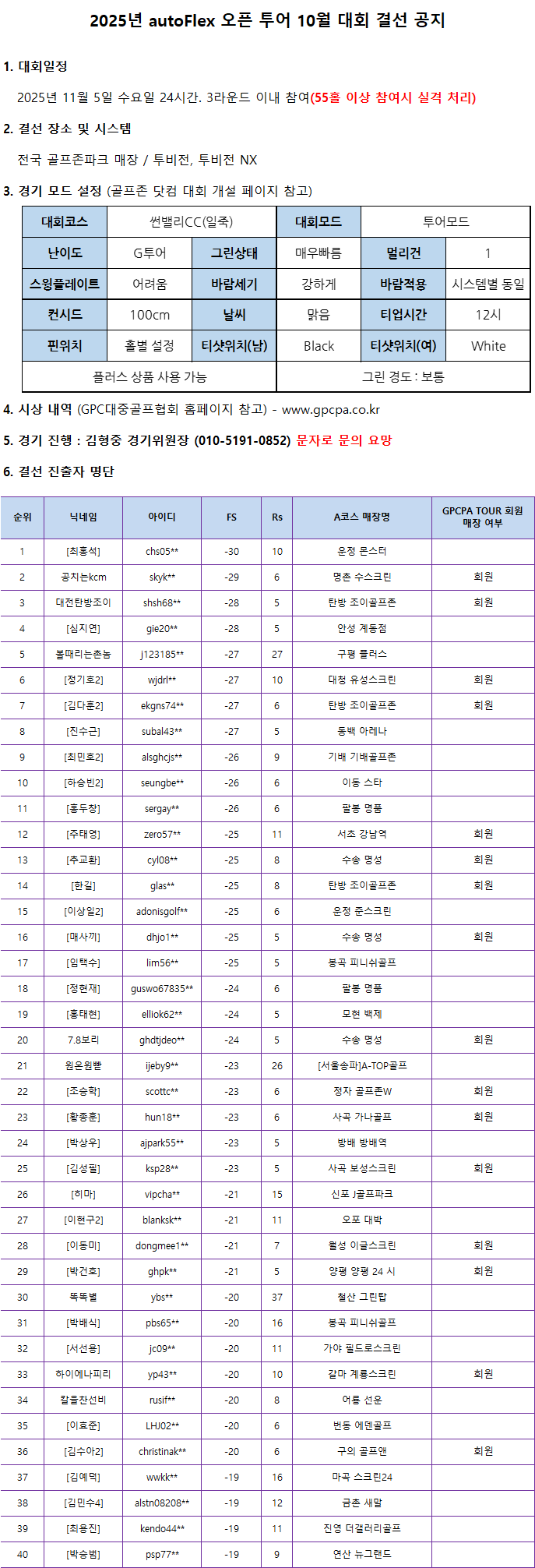 2025³â GPCPA TOUR 10¿ù ÀϺΠ½Ã»óǰ º¯°æ..